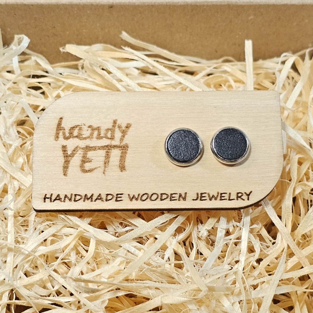 Černé dřevěné náušnice z buku v kovové puzetě – 8 mm