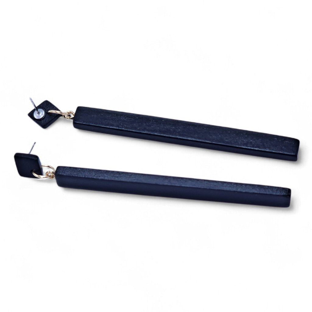 Černé dřevěné visací náušnice dlouhé
