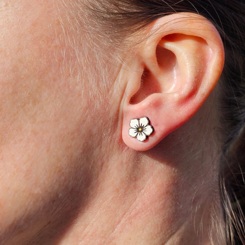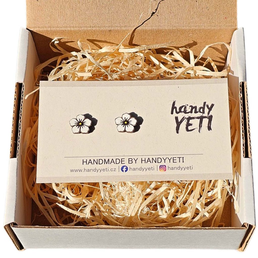 Dřevěné náušnice Bílý květ jabloně