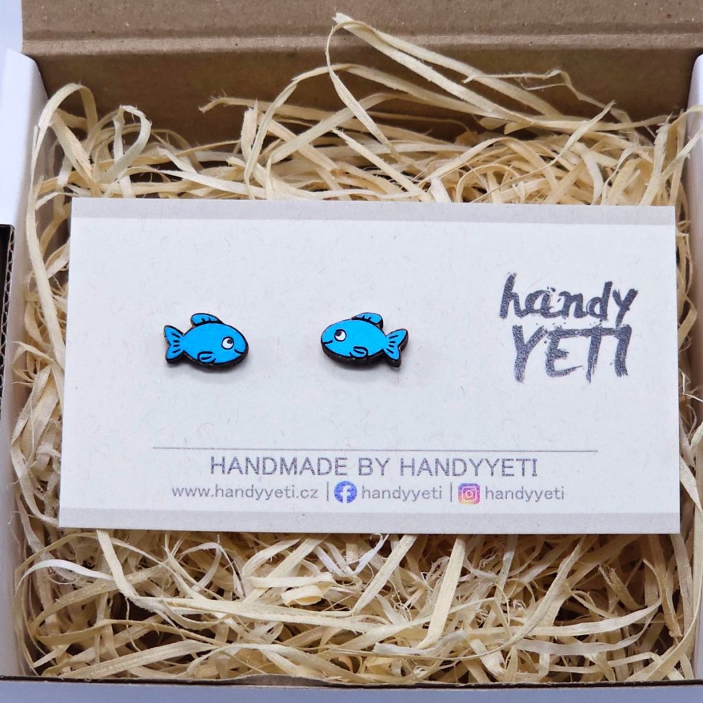 Dřevěné náušnice modré korálové rybky – hravý detail pro každý den