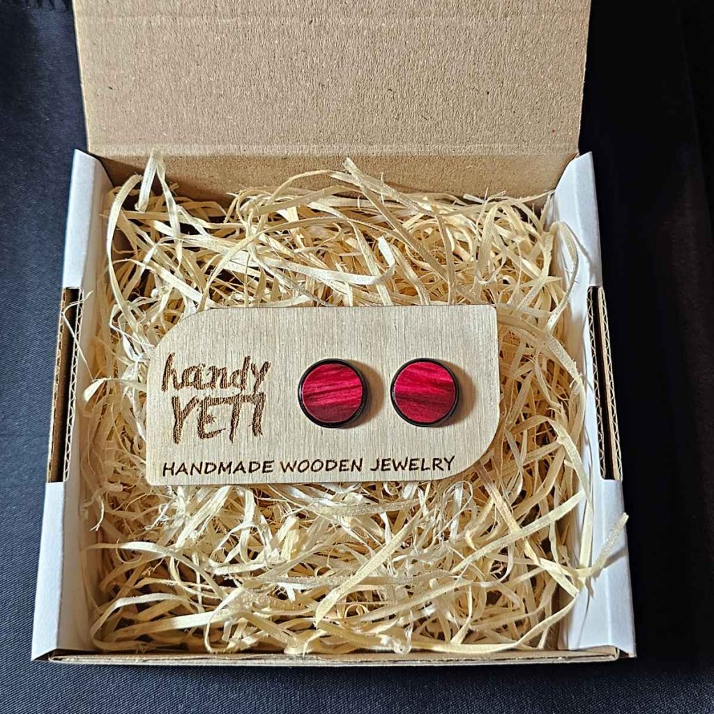 Všechny dřevěné náušnice pecky vyrábím ručně – od výběru dřeva přes precizní broušení až po závěrečné ošetření olejem. Hotový šperk umisťuji na dřevěnou kartu s gravírováním a balím do dárkové krabičky vystlané přírodní dřevěnou vlnou. Pokud objednáte více kusů, balím je společně – esteticky a ohleduplně k přírodě.