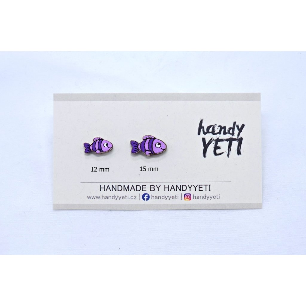 Dřevěné náušnice Pruhované rybičky fialové