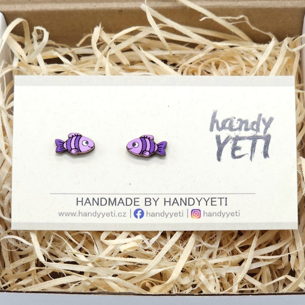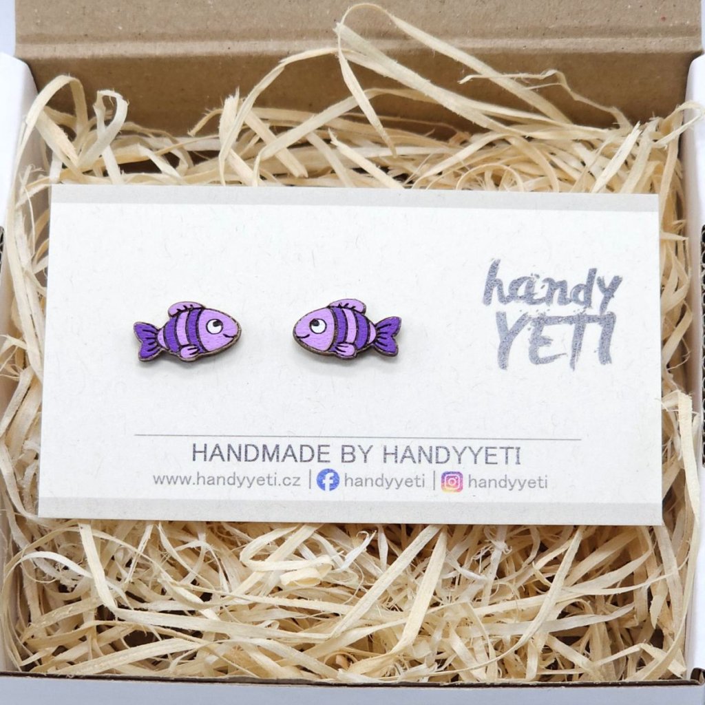 Dřevěné náušnice s motivem pruhovaných rybiček působí na první pohled nenápadně, ale právě v tom spočívá jejich kouzlo. Jemná fialová barva v kombinaci s jednoduchým pruhovaným vzorem vytváří doplněk, který je hravý, ale zároveň dostatečně decentní pro každodenní nošení.