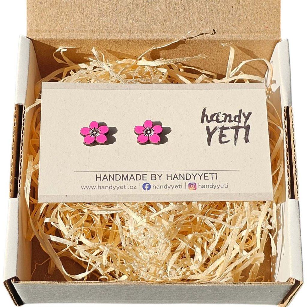 Květ sakury je symbolem pomíjivé krásy, elegance a okamžiku, který stojí za to si užít. Tento motiv jsme přenesli do podoby drobných dřevěných náušnic, které zaujmou svou jemností i výraznější tmavě růžovou barvou.