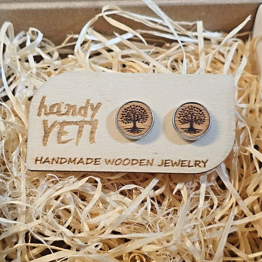 Tyto dřevěné náušnice pecky nesou gravírovaný motiv Stromu života, který je tradičně spojován s rovnováhou, silou a propojením přírody s člověkem. Jemné provedení motivu v kombinaci s bukovým dřevem vytváří klidný, vyvážený šperk vhodný pro každodenní nošení.