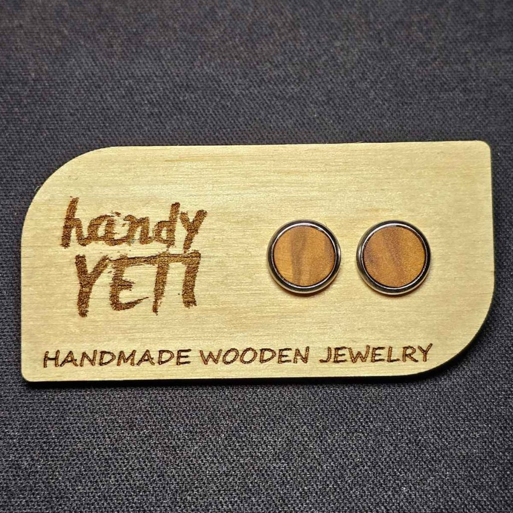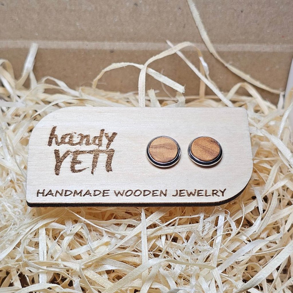 Dřevěné náušnice z olivového dřeva – pecky 8 mm