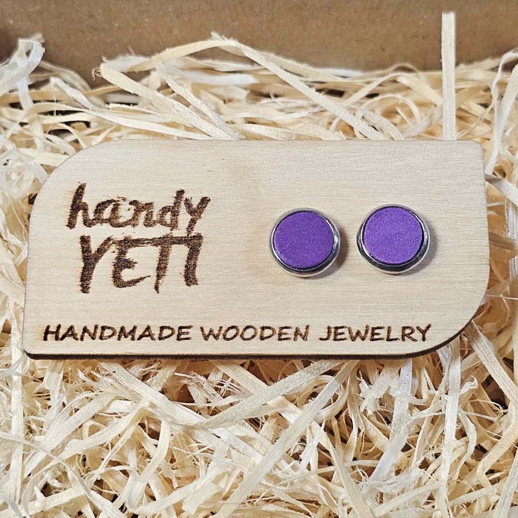 Fialové dřevěné náušnice z buku v kovové puzetě – 8 mm