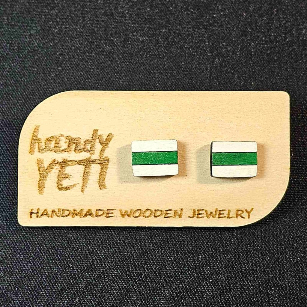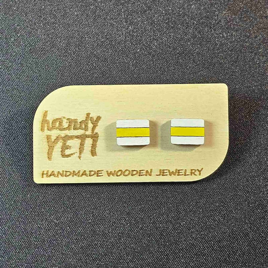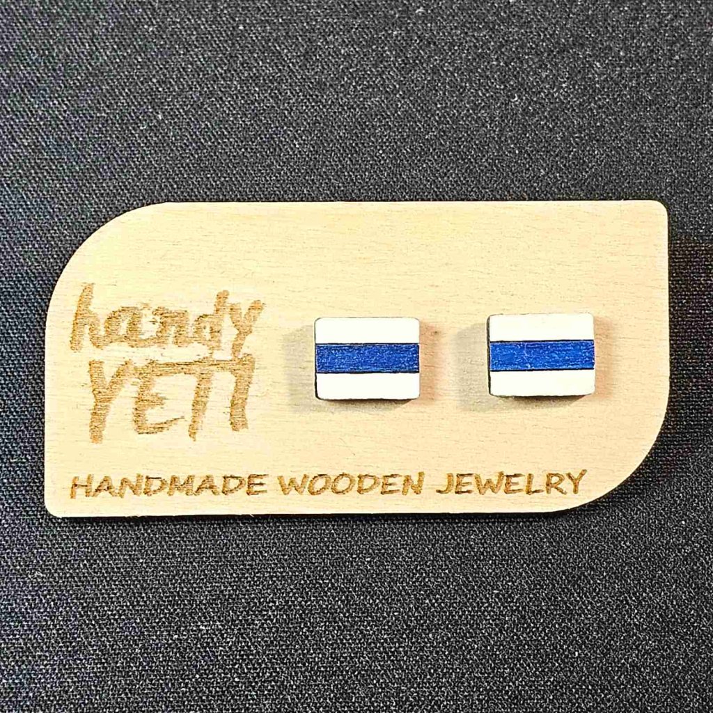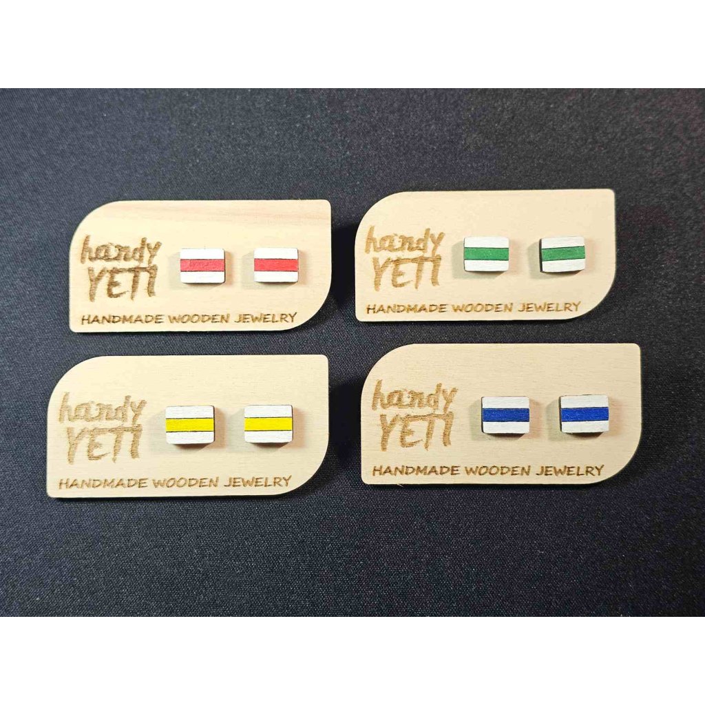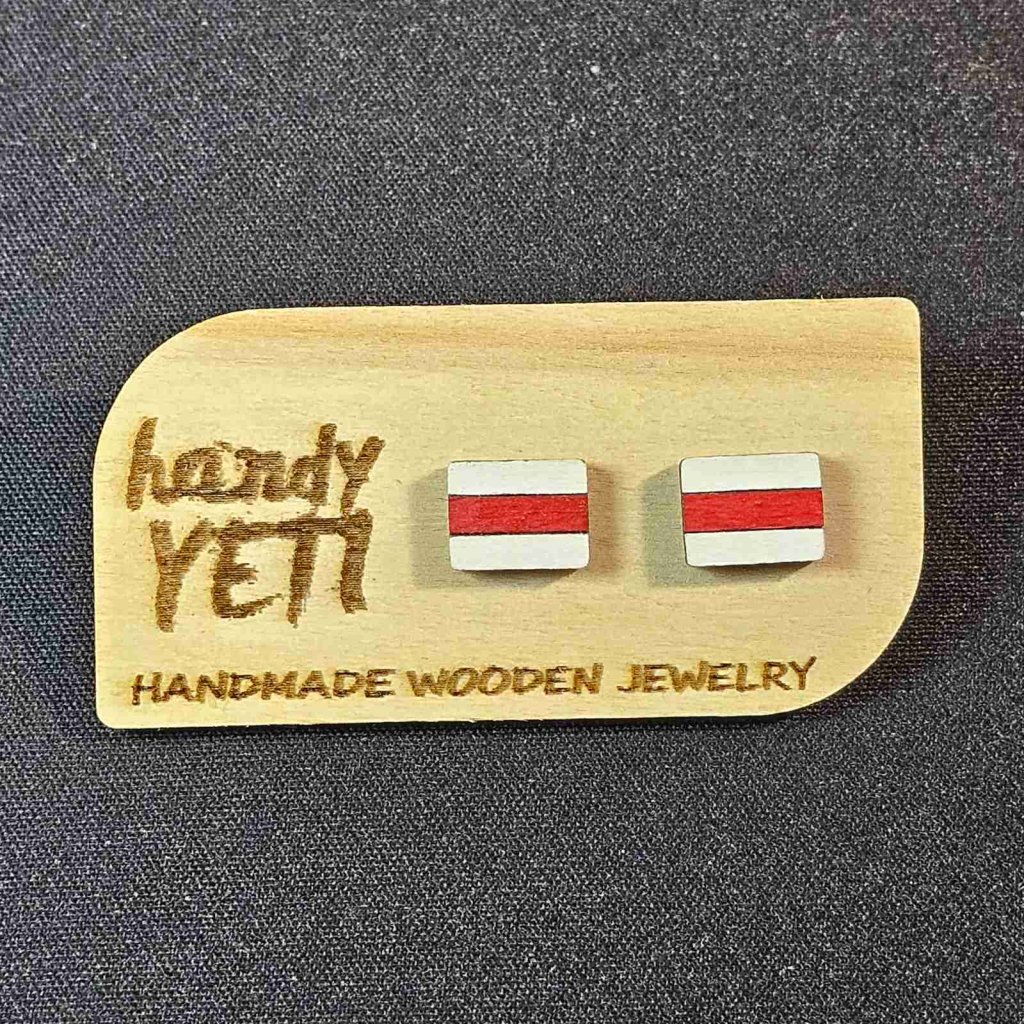 Tyto náušnice jsou vyrobeny z masivního bukového dřeva (ne překližky), které je gravírováno a následně ručně malováno akrylovými barvami. Každý pár je lakován zdravotně nezávadným lakem s atestem na dětské hračky, což zajišťuje jejich dlouhou životnost a odolnost. Součástí jsou silikonové zarážky pro bezpečné nošení.