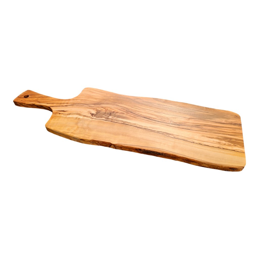 Klasické servírovací kuchyňské prkénko z olivového dřeva s držadlem. Klasický tvar, rozměry 41x14 cm. Vyrobeno z italské olivy, která vyniká nádhernou kresbou dřeva.