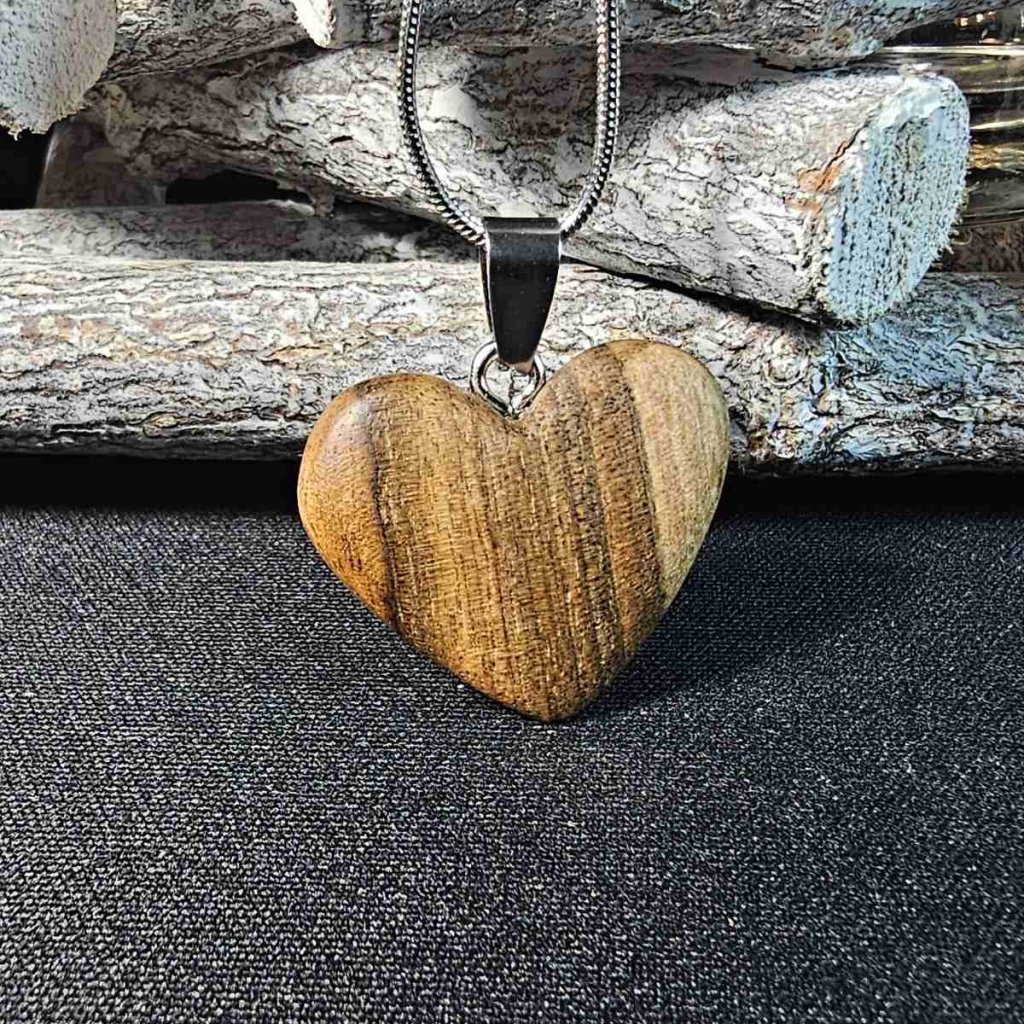 Stylový přírodní přívěsek ve tvaru srdce, který zaujme na první pohled díky nádherné kresbě ořechového dřeva. Každý přívěsek je ručně vyrobený s důrazem na detail, a díky unikátní struktuře dřeva nenajdete dva stejné kusy. Povrch je pečlivě ošetřen přírodním voskem, což podtrhuje krásu dřeva a zajišťuje jeho dlouhou životnost.