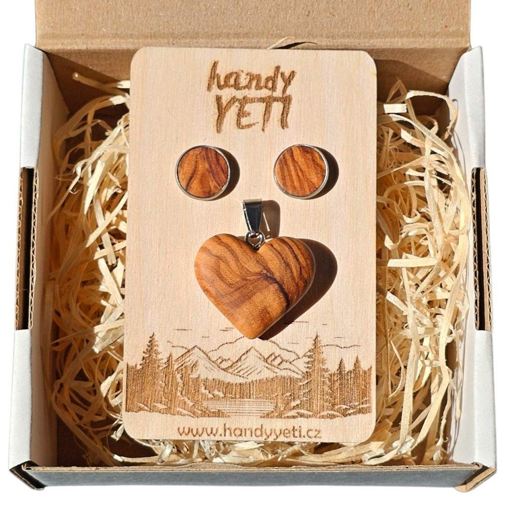 Dřevěné šperky z olivového dřeva – srdce a náušnice