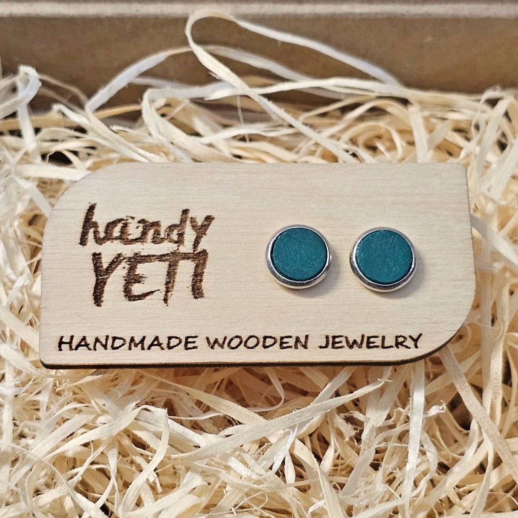 Zelené dřevěné náušnice z buku v kovové puzetě – 8 mm